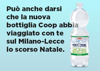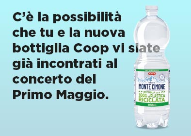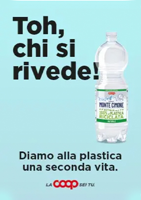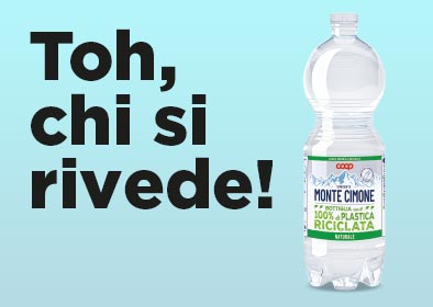 La bottiglia di acqua minerale a marchio Coop realizzata con il 100% di plastica riciclata e tappo non separabile che resta ancorato al sigillo della bottiglia è disponibile nell'unico formato da 1 litro sia per la naturale che la frizzante. Si tratta dell’acqua oligominerale Coop che proviene dalla sorgente di Monte Cimone (Modena).