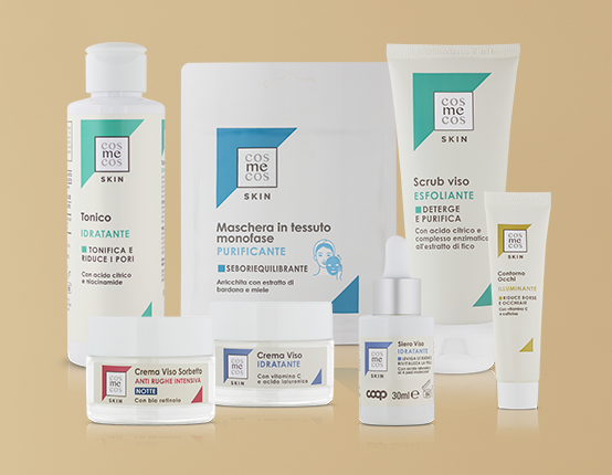 Linea Cosmecos La nuova linea di dermocosmetica per una bellezza libera, autentica, accessibile. Scopri tutti i prodotti Cosmecos: la linea dermocosmetica che esalta la tua unicità Cosmecos è la linea dermocosmetica esclusiva di Coop, creata per esaltare una bellezza autentica, unica e accessibile. Con formule avanzate e mirate per ogni esigenza, offre soluzioni perfette per lo sport, la cura della pelle, la rasatura, l’haircare e la colorazione, sempre con la qualità e convenienza garantite da Coop. Una gamma completa e versatile per chi desidera sentirsi bene dentro e fuori, senza compromessi, con prodotti efficaci e delicati. Soluzioni efficaci e delicate per il tuo benessere quotidiano: la gamma Cosmecos completa SKIN Per rispondere alle diverse necessità della pelle con soluzioni funzionali e innovative: cinque diversi moduli per ogni esigenza, dall’antiage alla detergenza. Soluzioni mirate per la cura quotidiana del viso. SCOPRI LA TUA SKINCARE MAN Una linea tutta per l’uomo, pratica ed essenziale, di prodotti a base di estratti di quercia e fico d’India. Dai classici prodotti per la rasatura, come schiuma da barba e sistemi di rasatura, ai prodotti più specifici per il trattamento del viso e della barba. Particolarmente indicati anche per le pelli più sensibili. HAIRSei diversi moduli che offrono risposta alle esigenze di ogni tipo di capello, per riparare, volumizzare e definire. Tante soluzioni per una chioma forte e luminosa, la linea si completa con una gamma di prodotti tricologici mirati per trattamenti specifici. COLOR Per una colorazione permanente, dieci diverse tonalità di colore senza ammoniaca, PPD e resorcina. La formula, arricchita con olio di camelia, olio di semi di lino e fitocheratina, garantisce intensità e luminosità rendendo i capelli morbidi e setosi per una copertura del 100% dei capelli bianchi. Scopri tutti i prodotti della linea Cosmecos Coop Schiuma da barba rinfrescante 300 ml 300,0 ml Cosmecos Shampoo ricci definiti hair 300 ml 300,0 ml Cosmecos Hair maschera colori brillanti 300 ml 300,0 ml Cosmecos Skin crema viso idratante 50 ml 50,0 ml Cosmecos Balsamo colori brillanti hair 250 ml 250,0 ml Cosmecos